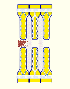 本裝置主要適用于帶式壓濾(脫水)機的物料前脫水系統(tǒng),本結構原理是根據實際使用過程中發(fā)現存在的缺點,重點考慮物料在進入濾室擠壓之前,將含水量很高的物料通過八角攪拌脫水籠裝置,使物料水份減少50%以上,物料的體積也相應減少一半左右。所以,進入濾帶擠壓的物料量可增加一倍左右,濾帶的速度也可相應提高,提高了壓濾機的出泥量。